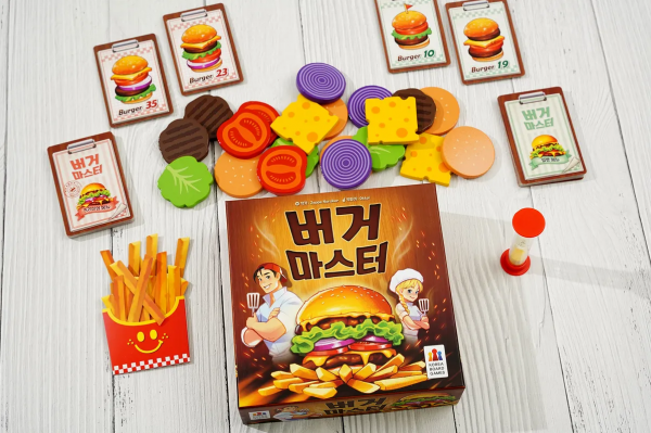 Burger Master is designed by Jeppe Norsker and is published in a new version by Korea Boardgames. A previous version, called Burger Academy, was published by UltraPRO.