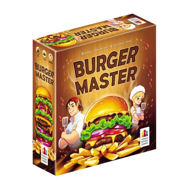 Burger Master is designed by Jeppe Norsker and is published in a new version by Korea Boardgames. A previous version, called Burger Academy, was published by UltraPRO.