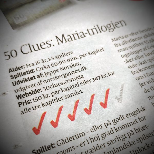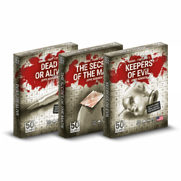 50 Clues: The Maria Trilogy is designed by Jeppe Norsker and Published by Norsker Games.